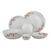 طرح بهار صورتی با گل‌های ظریف و رنگ‌بندی ملایم، حس آرامش و لطافت را به محیط منتقل می‌کند. جنس اوپال این سرویس، علاوه بر زیبایی، مقاومت بالایی در برابر ضربه و حرارت دارد و برای استفاده روزمره و مهمانی‌ها کاملاً مناسب است.