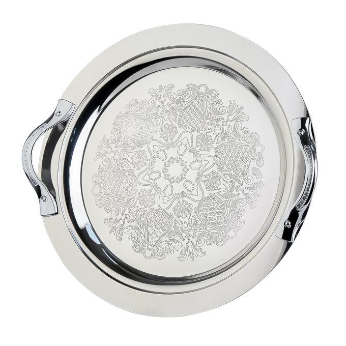 ابعاد: سینی با ابعاد متوسط، فضای کافی برای قرار دادن انواع خوراکیها، میوهها و شیرینیها را فراهم میآورد. این اندازه مناسب برای پذیرایی از مهمانان در جشنها و مراسمهای ویژه است.