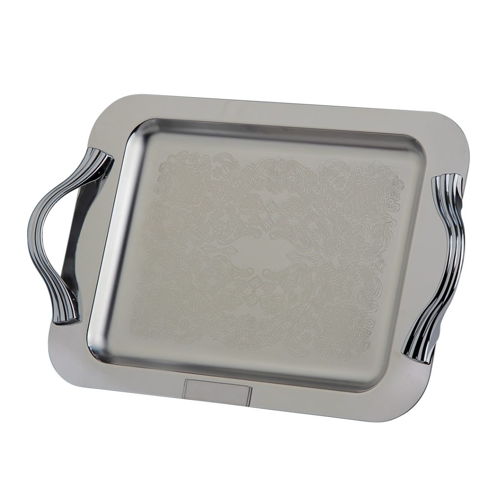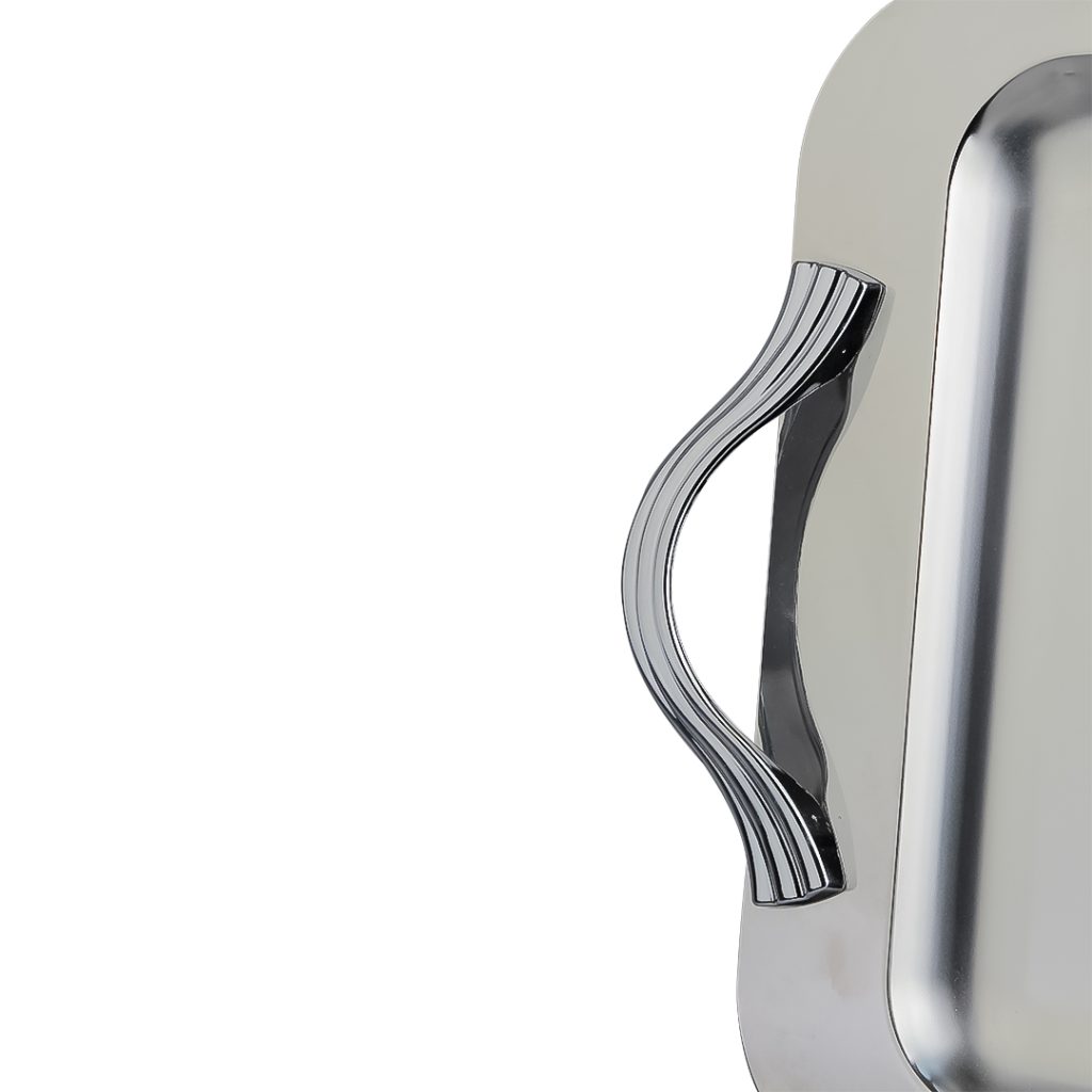 جنس: این سینی از استیل ضدزنگ با کیفیت ساخته شده است که باعث افزایش طول عمر و مقاومت آن در برابر حرارت میشود. با این خصوصیت میتوانید از آن در سرو غذاهای گرم نیز استفاده کنید.